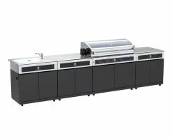 - This BBQ features a sleek, modern design that seamlessly integrates into any outdoor kitchen setup. Its compact footprint maximizes space without compromising on cooking area.