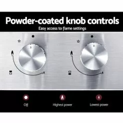 Whether it is for your existing or new home, our Devanti 30cm Gas Cooktop is just the right thing you need for easy, no-fuss cooking. Loaded with an extensive list of chef-friendly features such as an easy ignition system, easy-to-use power-coated knob control with a safety lock and flame failure safety device, the cooktop is also incredibly sleek with its stainless steel surface. It features two burners, a wok burner and one auxiliary burner, with various power levels to choose from to prepare that perfect dish. The solid cast iron grates hold up your pots and pans perfectly steady and are longlasting and heat-resistant as well. And a pan support is included for use with the auxiliary burner to prevent tiny pans from tipping over and messing up your cooktop. The cooktop is factory set for natural gas but is compatible with LPG once the included LPG conversion kit is installed. Powerful and yet integrally safe, the cooktop promises many moments of hassle-free delicious cooking with the right blend of sophistication and class for your kitchen.