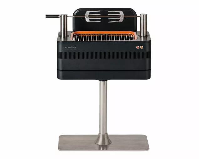 With the Fast Flame Ignition System™ (9 minutes), featuring an electric element, you can get your charcoal burning at just the right temperature in just 10 minutes. With the patented Rotiscope Technology™, you can set up an authentic, top-of-the-line rotisserie, powered by a discrete motor, in moments. The jaw-like Cliplock Forks™ ensure everything from chickens to suckling pigs are kept firmly in place on the rotisserie rod as it turns. From the subtly integrated rotisserie, to the retractable power cord, the FUSION™ is the perfect balance of function and form, taking design cues from minimalist Danish design. Easy to use and take care of. The porcelain enamel firebox and charcoal tray are easy to clean after use. Make your FUSION™ even more versatile with the free-standing pedestal and move your barbeque with ease.