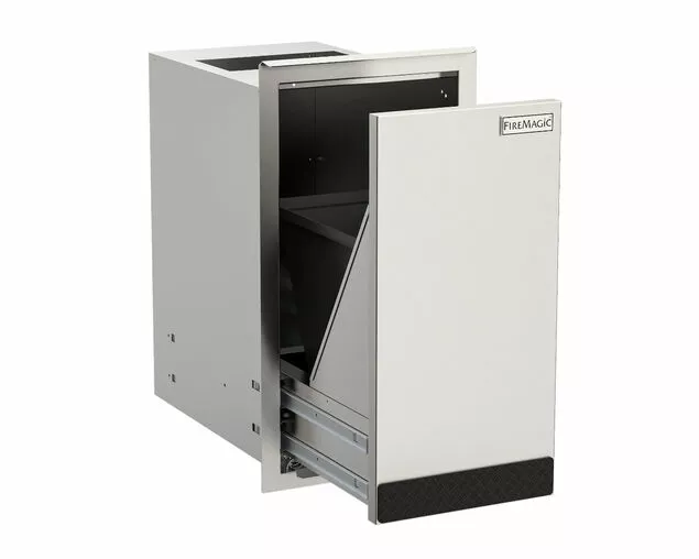 - The sleek design seamlessly integrates with Fire Magic grills, providing a convenient and stylish solution for waste disposal during your BBQ sessions.