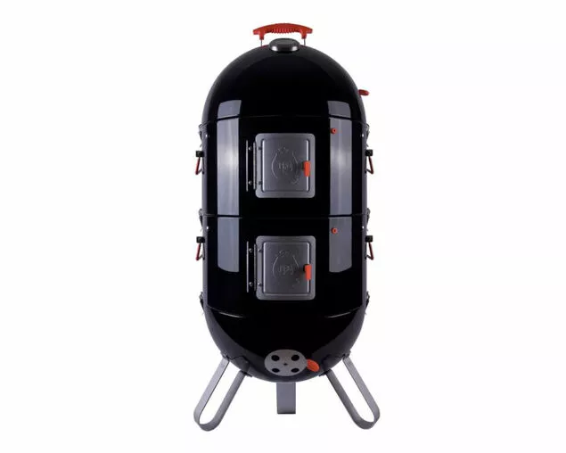 This highly versatile BBQ Smoker can grill, roast or smoke food to perfection, the perfect smoker for those starting out or looking for a reliable everyday barbecue-smoker. In-built lid gauge and multiple vents allowing you to control your temperature with ease. Perfect size for families and barbecue parties! Also works as a great portable grill for the beach. Large range of accessories available to make your smoker even more versatile. Made from highest quality materials, with a 0.8mm plate steel body coated in durable porcelain it will resist the elements for years to come. All fittings throughout – side handles, clips, and nuts and bolts – are rust resistant Stainless Steel including the grills.