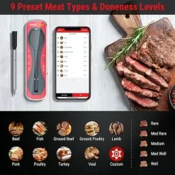 Easy-to-Use, Multifunctional App: Get real-time alerts on the go with the smart thermometer App; Supports custom timer and temperature graphs; USDA-recommended preset temperatures elevate your cooking like a pro every time you fire up your grill with our smoker thermometer