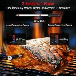 1 Probe, 2 Sensors: Bluetooth thermometer for smoker features a meat temperature probe that can simultaneously measure internal meat temperature and ambient pit temperatures, while still reading highly accurately in just 3 seconds, so youβll never overcook or undercook again!