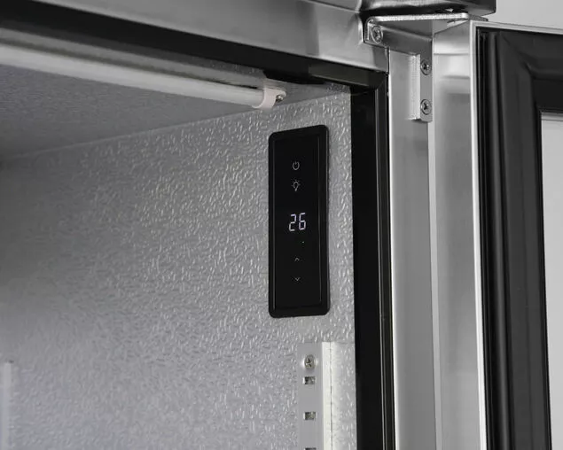 The Fridge also includes a digital control to easily show the internal cabinet temp and adjust the temperature/internal light as needed.
